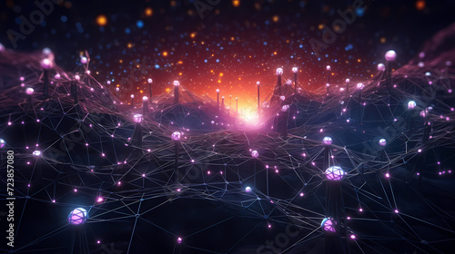 Future digital technology, abstract digital waves and particles on dark background