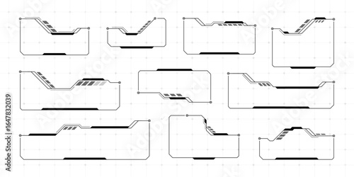 Futurist hud vector graphics interface elements. Cyber display and digital dashboard for user experience. Hi-tech virtual reality.