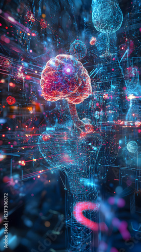 futuristic, three-dimensional, representation, machine, learning, datum, interaction, neural, layer, processing, stage, technology, system, visualisation, abstract, creative, innovation, digital, science