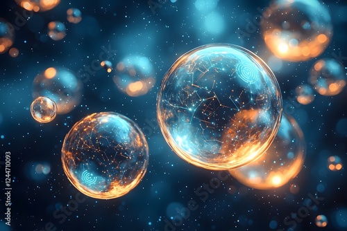 Futuristic 5G Digital Backdrop with Floating Glowing Spheres and Luminous Particles