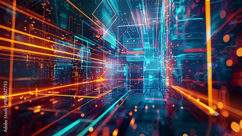 Futuristic Abstract Background Featuring a Blend of Virtual Environments, Augmented Reality Elements, and Immersive Interfaces, Vibrant and Dynamic