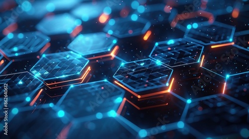 Futuristic Abstract Design with Glowing Hexagonal Patterns and Neon Lights in a Digital Space