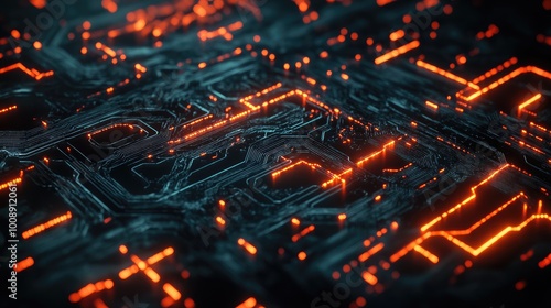 Futuristic abstract network of interconnected lines and glowing circuits