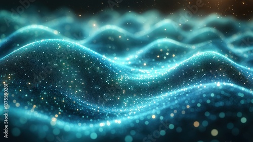 Futuristic Abstract Wave Technology Visual with Blue and Green Light Digital Effect
