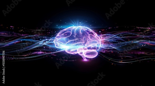 Futuristic ai brain icon with soft glow and data streams emphasizing connectivity and processing