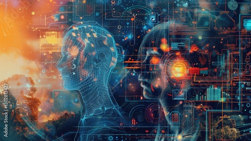 Futuristic AI Concept with Digital Human Profiles