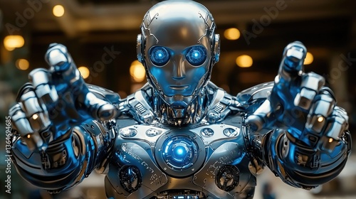 Futuristic AI Robot Demonstrating Versatile Adaptability in Advanced Technology Environment
