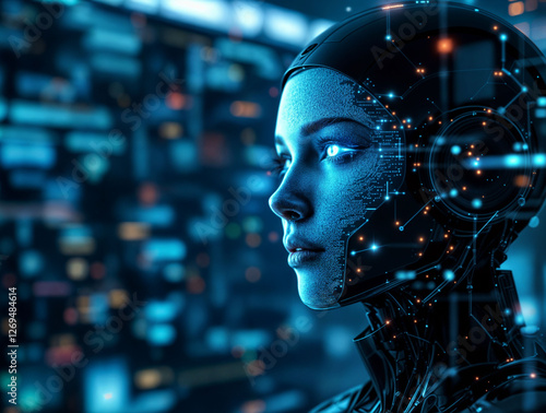 Futuristic AI system identifying a hacker through facial recognition technology
