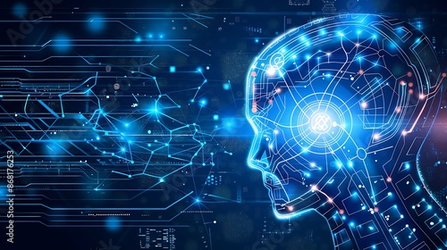 Futuristic AI Technology Background with Neural Network Patterns and Digital Elements