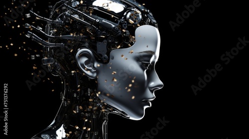 Futuristic android on the black background.