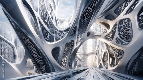 Futuristic Architectural Design Showcasing Steel Frames and Abstract Patterns In an Urban Setting