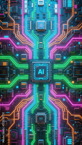 Futuristic Artificial Intelligence Concept with Digital Circuit Interface