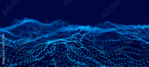 Futuristic background of points and lines with a dynamic wave. Big data. Abstract background 3d rendering. 4k.