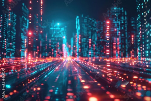 futuristic big data technology concept with glowing digital elements 3d render