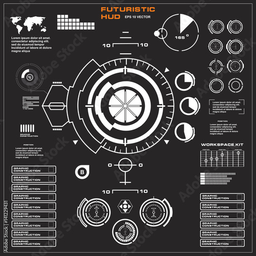 Futuristic black and white HUD, virtual touch user interface in flat design