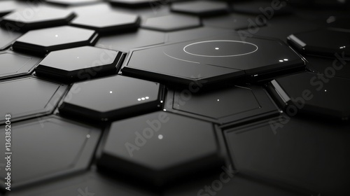 Futuristic Black Hexagonal Pattern 3D Abstract Surface with Geometric Shapes Modern Technology Design Concept Background Digital Artwork for Tech Innovation Projects