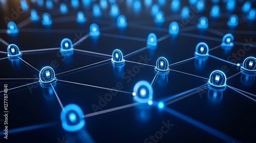 Futuristic blockchain network with glowing nodes connected by lines