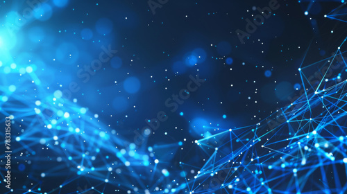 Futuristic blue background depicting interconnected data nodes and lines with glowing particles