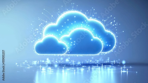 Futuristic Blue Cloud Computing Network - Digital Data Concept