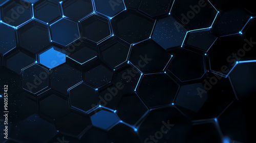 Futuristic blue hexagonal tech grid