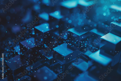 Futuristic Blue Technology Background with Sparkling Cubes