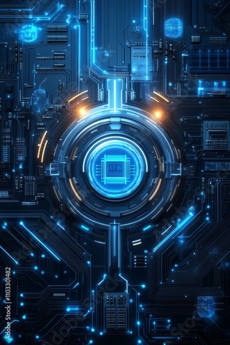 Futuristic Circuit Board, High-Tech Components, Complex Electronic Design, Advanced Technology
