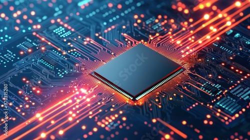 Futuristic Circuit Board with Glowing Lights and Processor