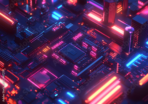 Futuristic Circuit Board with Glowing Orange Lights