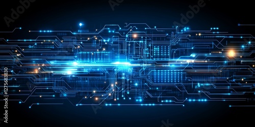 Futuristic Circuitry Abstract Blue Digital Background Representing High-Tech Innovation.