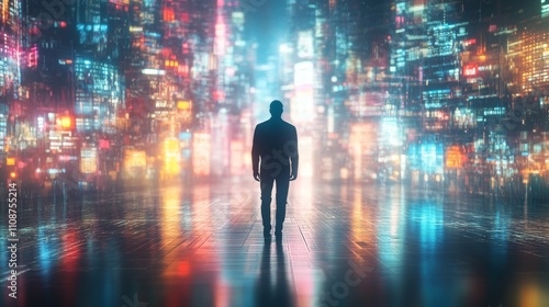 Futuristic City Silhouette with Vibrant Lights