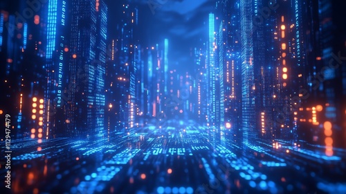 Futuristic Cityscape of Digital Data Streams - made with Generative AI