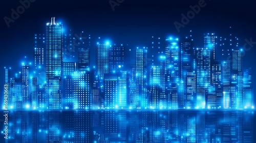 Futuristic Cityscape with Glowing Effects and Lights