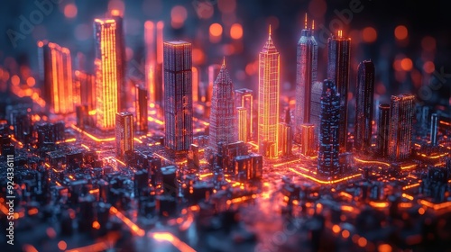 Futuristic Cityscape with Glowing Towers.