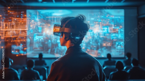 Futuristic Classroom with Interactive AR: Classrooms using augmented reality for interactive learning.