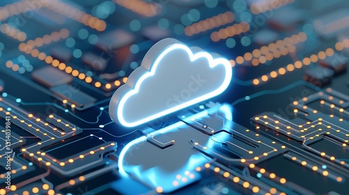 Futuristic Cloud Computing Concept with Circuit Board Background and Neon Lighting for Technology Themes