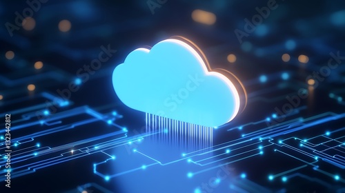 Futuristic Cloud Computing Concept with Data Flow and Circuitry in a Digital Environment