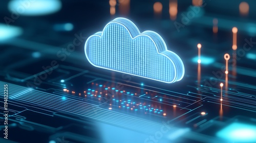 Futuristic Cloud Computing Concept with Digital Data Lines and Neon Lights in Cyber Space
