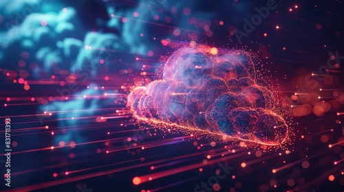 Futuristic Cloud Computing Concept with Digital Data Particles and Neon Light Streaks