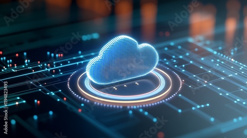 Futuristic Cloud Computing Concept with Digital Network and Data Transmission Visualization in Blue Hues