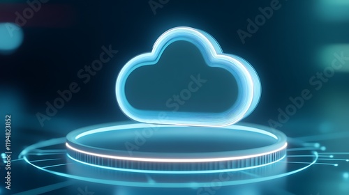 Futuristic Cloud Computing Concept with Glowing Blue Cloud Icon on Abstract Technology Background