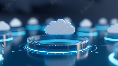 Futuristic Cloud Computing Concept with Glowing Elements and Abstract Technology Background