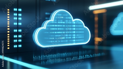 Futuristic Cloud Computing Concept with Neon Blue Elements in Digital Data Environment