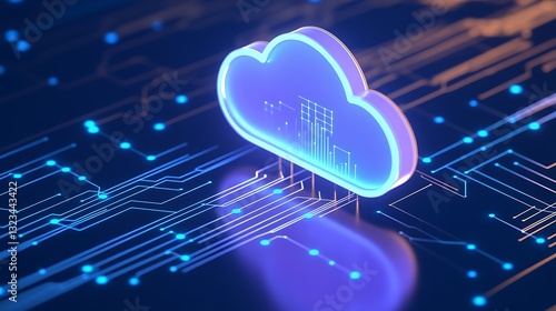 Futuristic Cloud Computing Concept with Neon Circuits Representing Data Transfer and Digital Transformation
