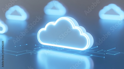 Futuristic Cloud Computing Concept with Neon Glow and Digital Network Background