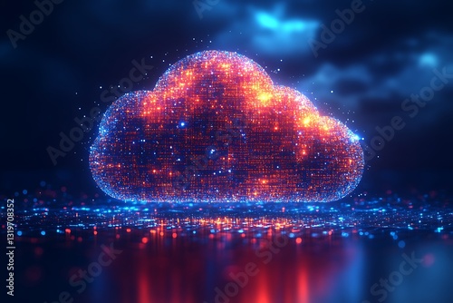 Futuristic Cloud Computing Digital Data Network, Abstract 3D Render