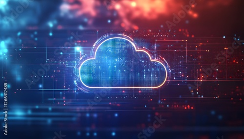Futuristic cloud computing symbol in digital network background