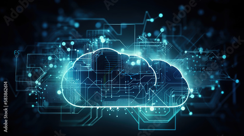 Futuristic Cloud Computing Technology Concept Illustration. generative ai.