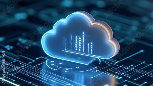 Futuristic Cloud Technology Concept with Data Visualization and Digital Circuit Background for Innovation Topics