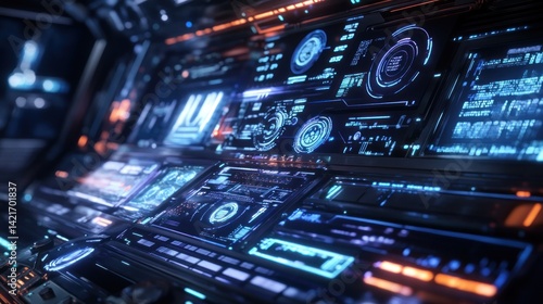 Futuristic cockpit dashboard with glowing displays