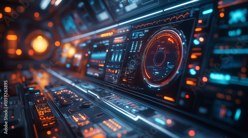 Futuristic control panel displaying technology with glowing interfaces